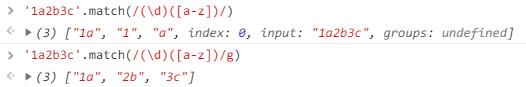 如果正则表达式带g 返回的就是逐次匹配结果构成的数组 (相当于是逐次执行exec, 把每次执行结果的第一个元素拿出来, 全都放进一个数组里)
