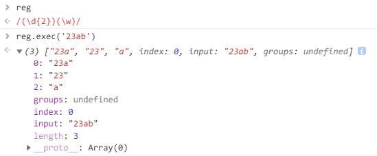 - 第一个元素是在字符串当中匹配到的子串